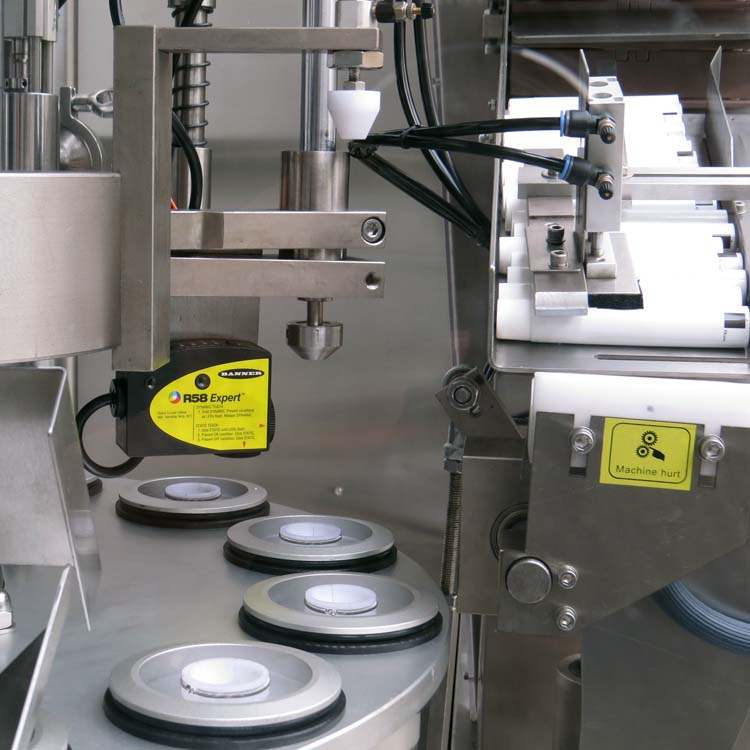 ZHF-100A軟管灌裝封尾機(jī)高端的液晶顯示編程控制器和按鈕相結(jié)合的操作視屏,全面把握設(shè)備的無極調(diào)速、參數(shù)設(shè)置、產(chǎn)量計(jì)數(shù)統(tǒng)計(jì)、氣壓指示、故障顯示等運(yùn)行 狀況,使操作簡單而人性化。全自動完成從供管、對標(biāo)、充惰性氣體(可選)、灌裝、封尾、打碼、成品導(dǎo)出全過程。高精度的對標(biāo)系統(tǒng),降低了管體和色標(biāo)的色差范圍。調(diào)節(jié)部位外置、位置數(shù)字顯示、調(diào)節(jié)快捷、準(zhǔn)確(適用于多規(guī)格、多品種生產(chǎn))。