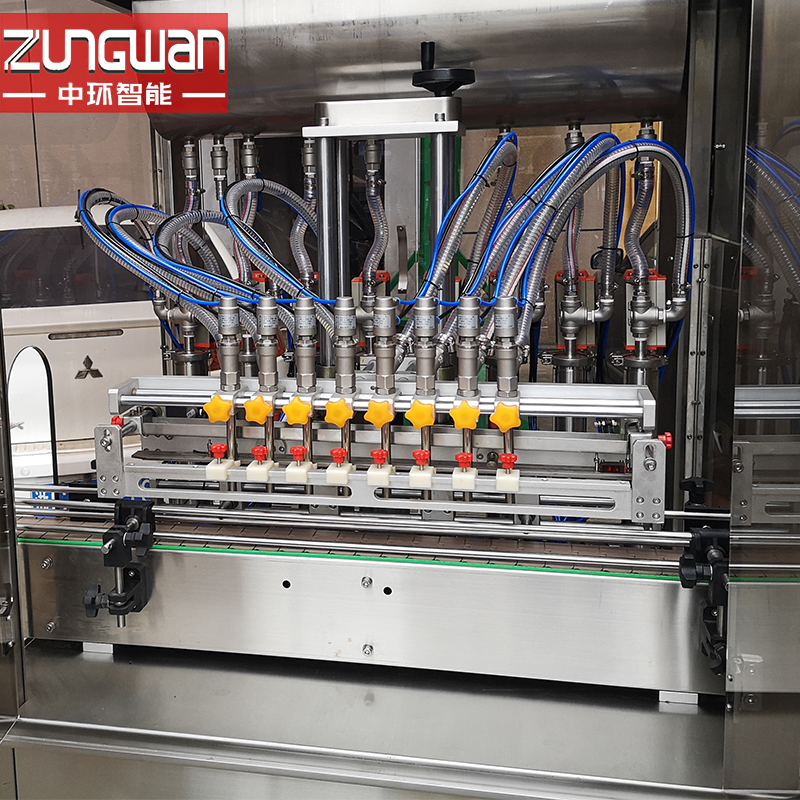 機器特點:全自動液體灌裝機采用先進的伺服電機控制的容積式灌裝技術(shù),更換任意一種灌裝規(guī)格只需在觸摸屏中修改參數(shù),能同時對8個頭的灌裝量進行大幅度的整體調(diào)整,活塞密封件采用進口材質(zhì)加工而成,耐腐蝕,耐磨,極大的提高了設(shè)備的使用壽命。